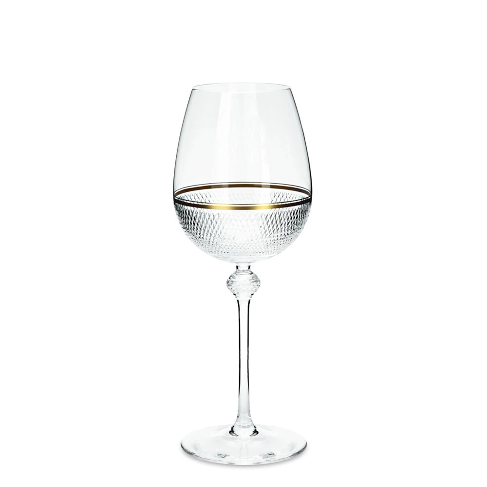 Prestige’s raised diamond cut on the lower half of the glass is more than decorative—its tactile surface provides a nice grip. A double band of 24k gold—one thin and the other thick—encircles the handcut glass. Can be monogrammed with your initials or engraved with a coat of arms.